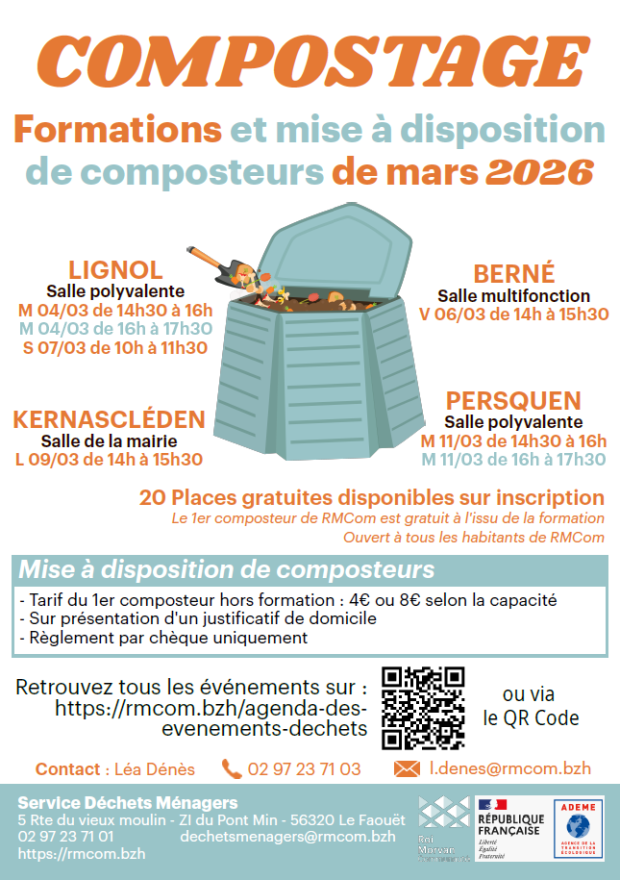 Profitez-en également pour retirer votre premier composteur de Roi Morvan Communauté si vous n’en avez pas eu l’occasion jusqu’à présent ! Pour cela munissez-vous d’un justificatif de domicile et d’un chèque pour le règlement.