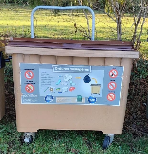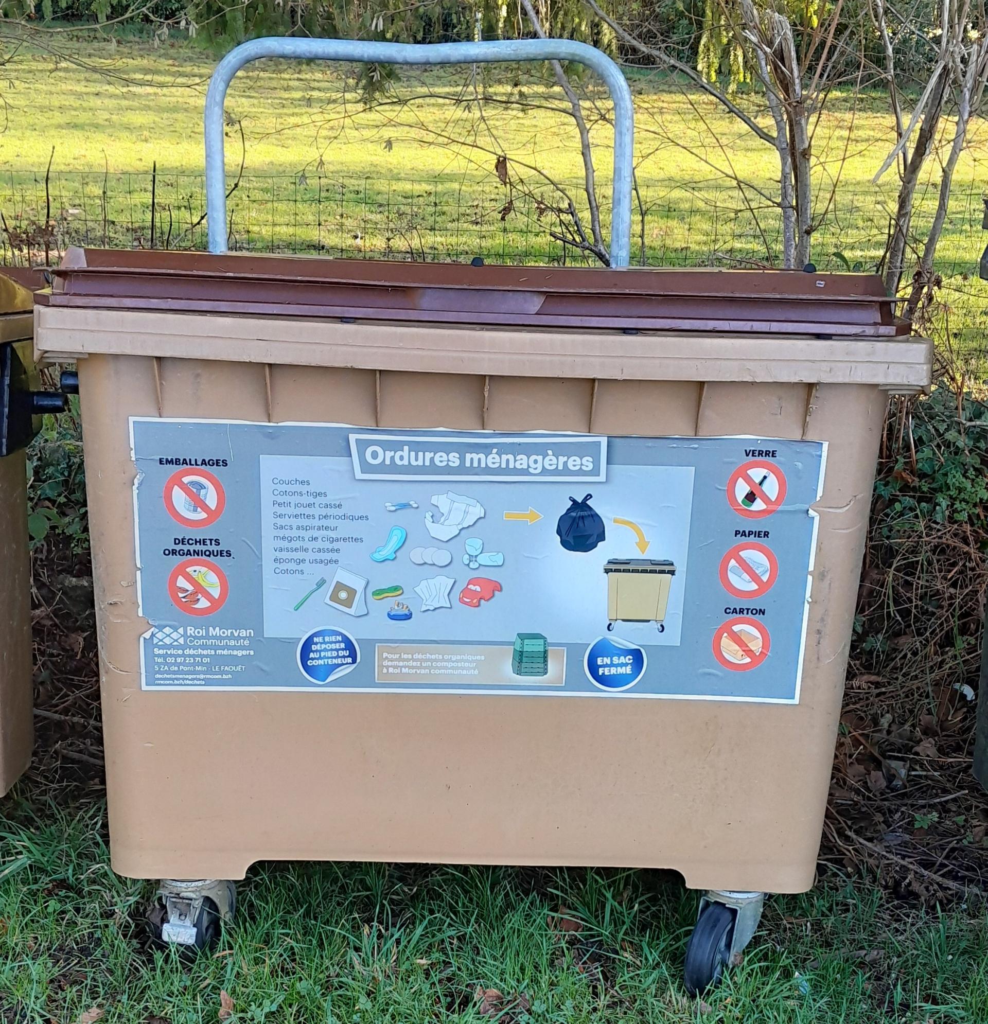 Les ordures ménagères résiduelles sont à déposer en sac fermé dans les conteneurs à couvercle de couleur marron.